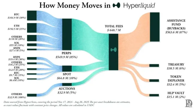 Hyperliquid 打造了独特的社区生态,将约 90% 的营收通过 Hyperliquid 援助基金返还给用户。