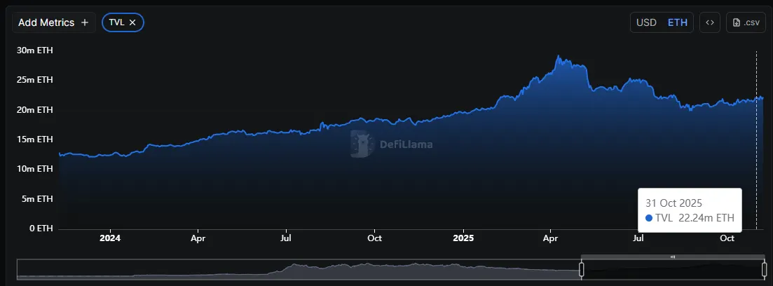 链上总 TVL 1497 亿美元,环比下降 12.75%,跌幅与币价同步。市场大幅下跌过程中,链上质押数量变化不大,TVL 下跌主要受价格影响,显示长期 ETH 持有者对市场仍保持相对乐观。