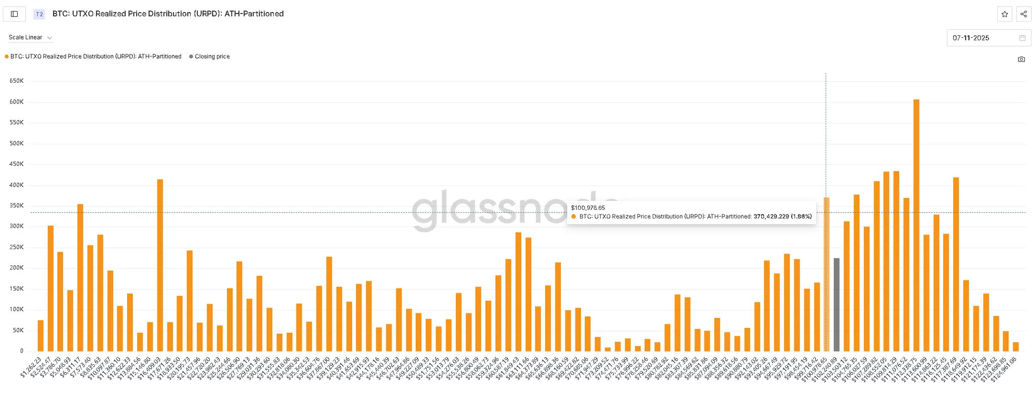 比特币已跌破 104700-117300 美元大量换手区间,该区间或成为后续反弹的浮亏筹码抛售压力区。回落过程中,101000 美元附近出现明显换手,短期或形成阶段性支撑。