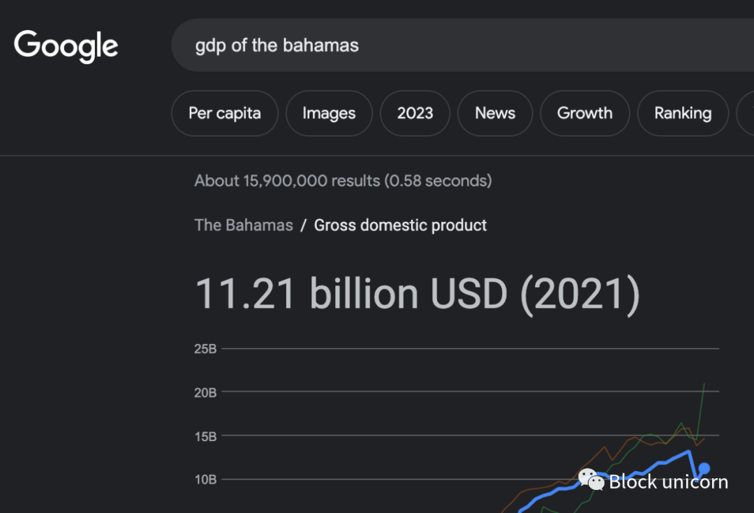 SBF说:"你知道 FTX 的收入超过了巴哈马GDP的 10%吗?" 当时我不知道,但在谷歌上快速搜索后发现,他说的可能一点也没错。