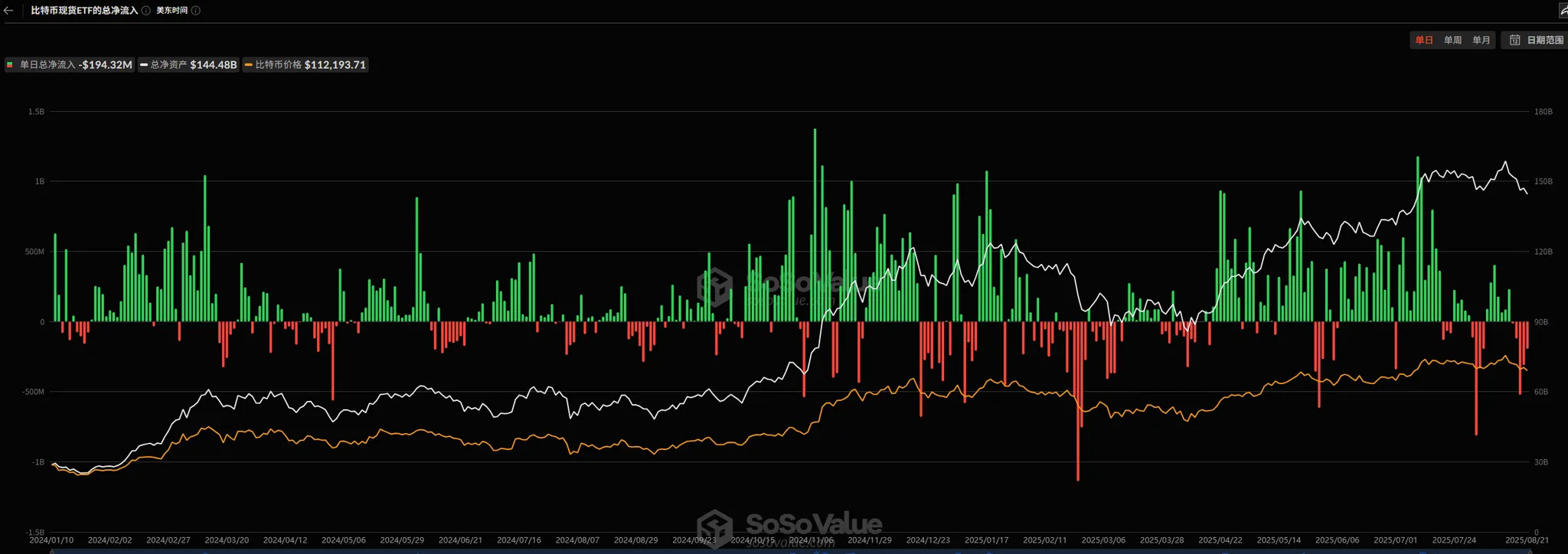 ETH ETF:虽也录得 6.3822 亿美元净流出,但情况好于 BTC——8 月 21 日已恢复 2.8761 亿美元单日净流入,这与 ETH 20 日反弹后未再创新低的走势形成支撑,后续需持续跟踪 ETF 资金能否维持净流入。