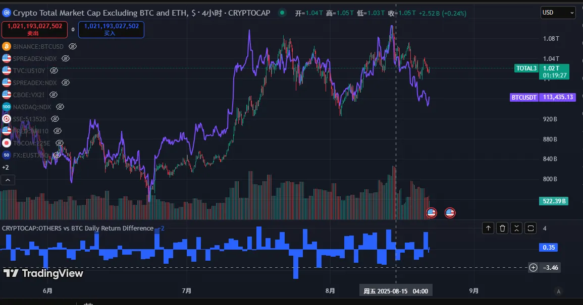 ETH 表现相对亮眼,目前已收复最后一波下跌失地,但受 BTC 低迷走势拖累,短期仍面临 115000 美元的潜在压制,能否持续强势需观察后续资金承接力度。