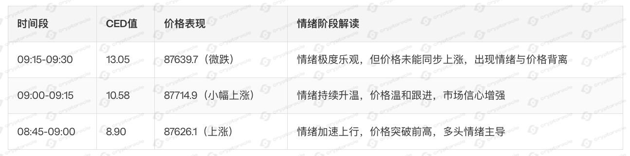 注:24小时内仅尾盘出现3个|CED|>10的极端情绪时段,均集中在早盘9点前后