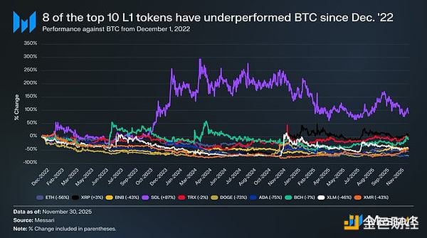 L1代币持续跑输比特币