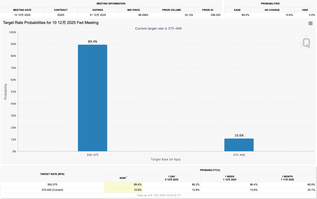 如果落地,这将是 9 月以来连续第三次降息,届时联邦基金利率将降至 3.5%-3.75%区间。