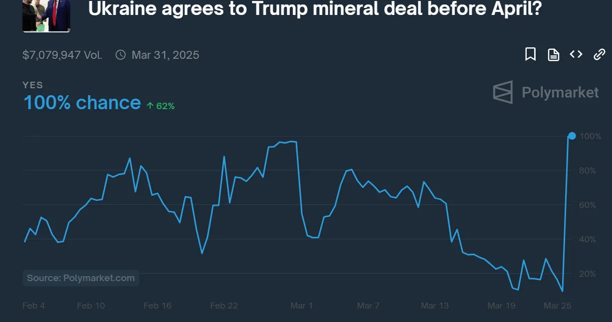 三个月前的乌克兰矿产协议市场遭遇了更加露骨的治理攻击。这个市场询问乌克兰是否会在4月前与特朗普政府签署矿产协议,总赌注超过700万美元。鲸鱼通过三个地址控制了500万UMA代币,约占总量的25%,价值约2000万美元。在投票窗口的最后时刻,这三个地址同时投票支持"YES"。尽管实际上没有任何矿产协议签署,市场被强制结算为"YES"。