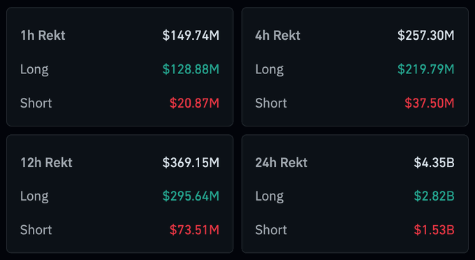 消息发布后,BTC价格迅速跌破 $102,000,触发大规模自动清算机制。