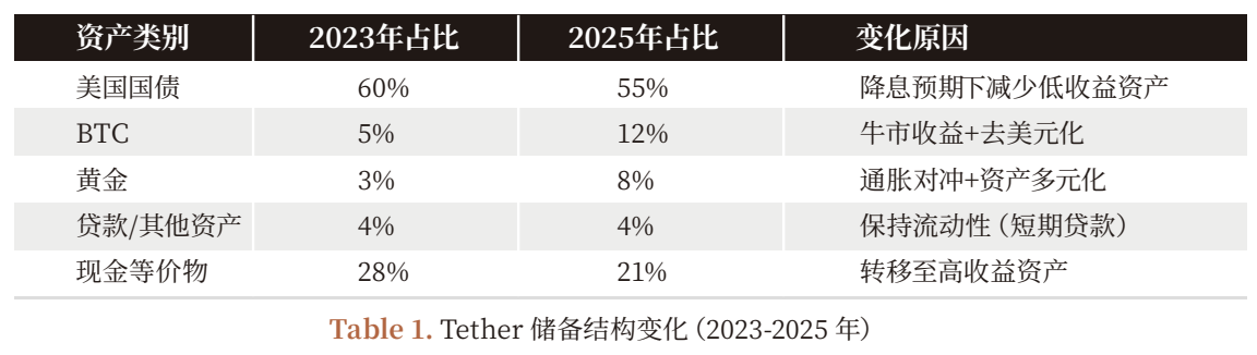 Tether 的储备结构转型(2023-2025 年)并非随机,而是「收益 - 风险 - 战略」的三重考量: