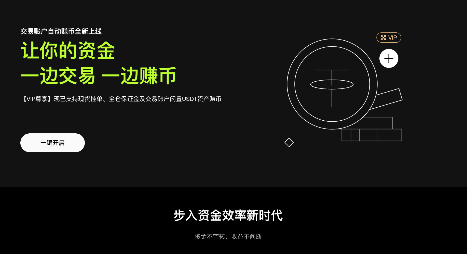 开启入口一:可以直接通过落地页进入:https://www.okx.com/zh-hans/campaigns/auto-earn-vip?pagesourcefrom=medianews