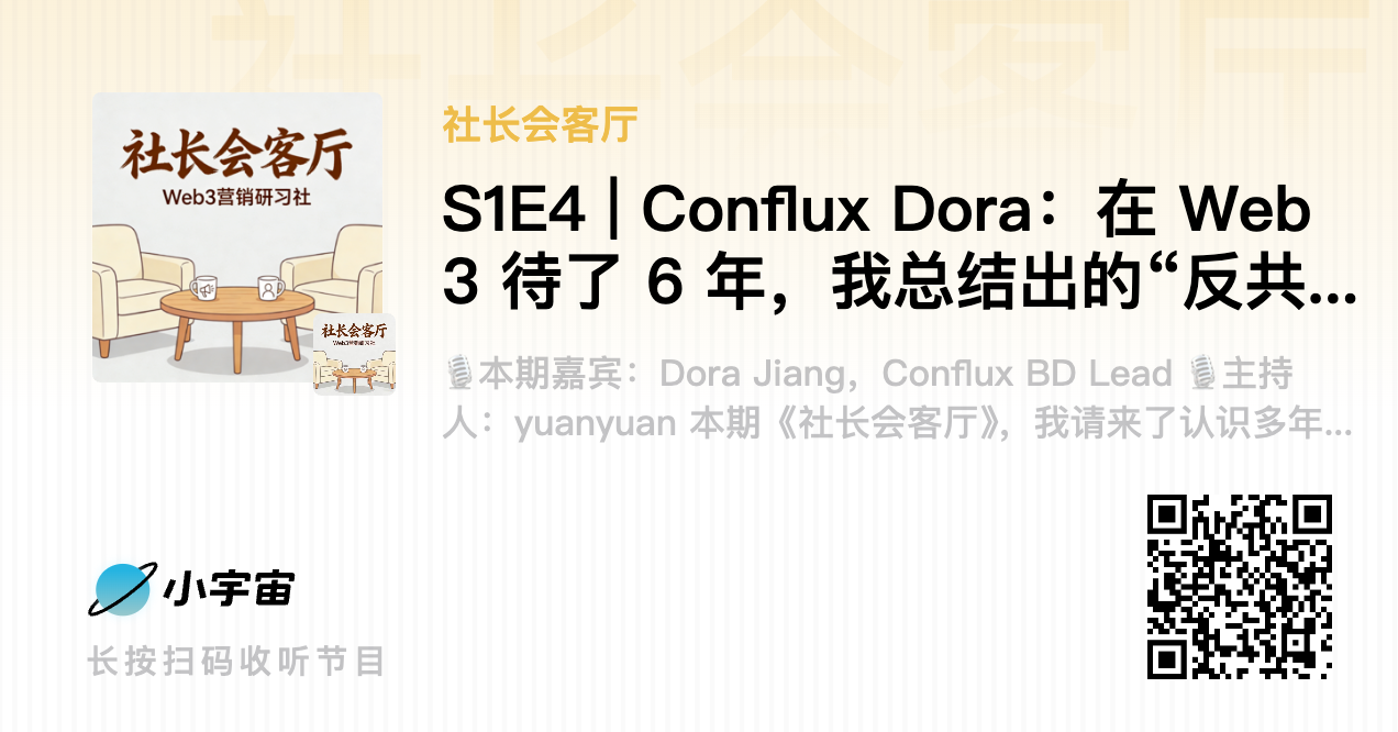 《社长会客厅》是 Web3 营销研习社的深度访谈栏目,邀请行业里最具判断力的营销负责人、品牌主理人、投资人、内容创作者进行对谈,从一线视角拆解 Web3 营销背后的方法论、抉择与结构性机会。