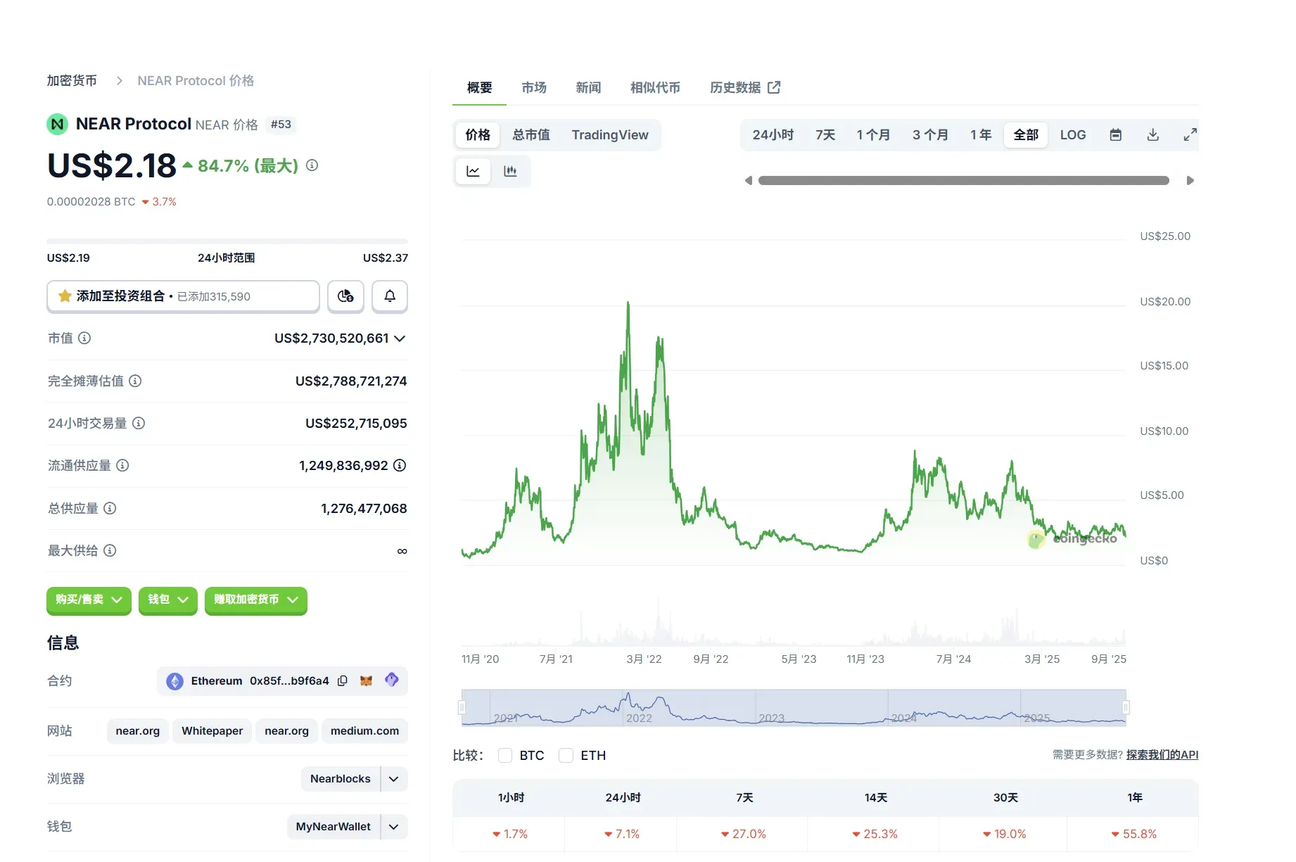Near 在本轮周期中,除 2024 年中后表现尚可,其他时间大多横盘在历史低位附近;尚未表现出过度泡沫化的趋势。