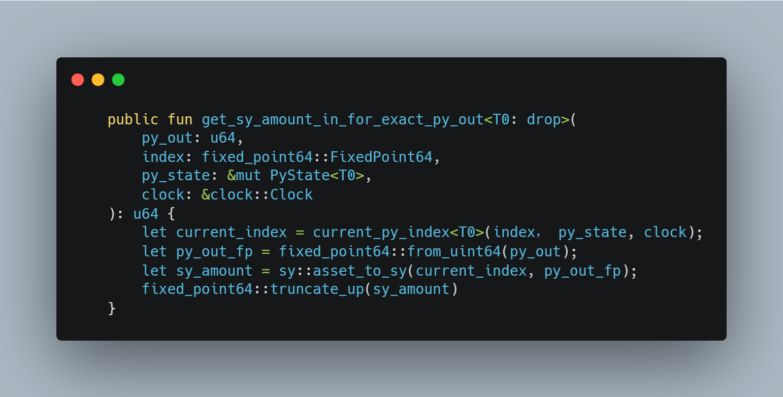 ·py.get_sy_amount_in_for_exact_py_out计算出PY输出所需要的SY的输入量,然而这里index没有任何限制