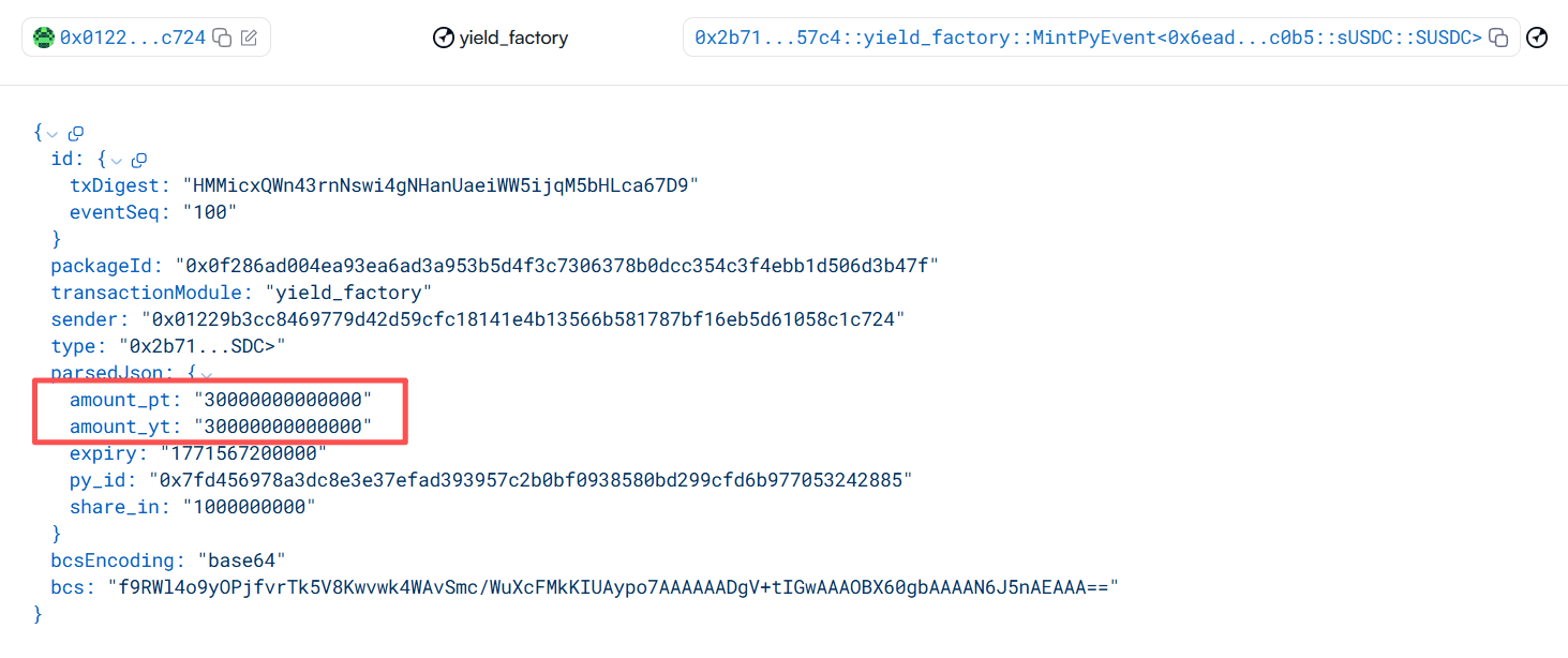 5.接着攻击者利用被异常放大的指数,在调用 yield_factory.mint_py 时,以畸高的折扣利率铸造 PT 与 YT,从而套取大量 PT。