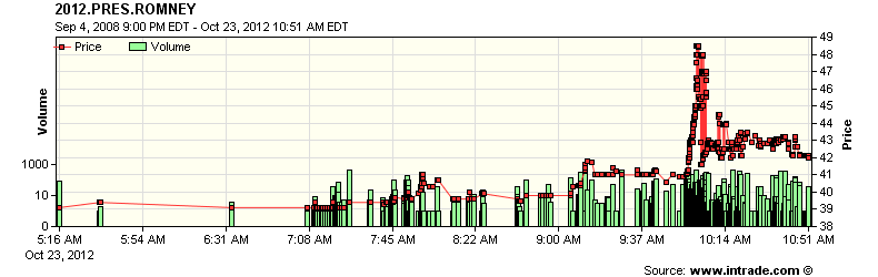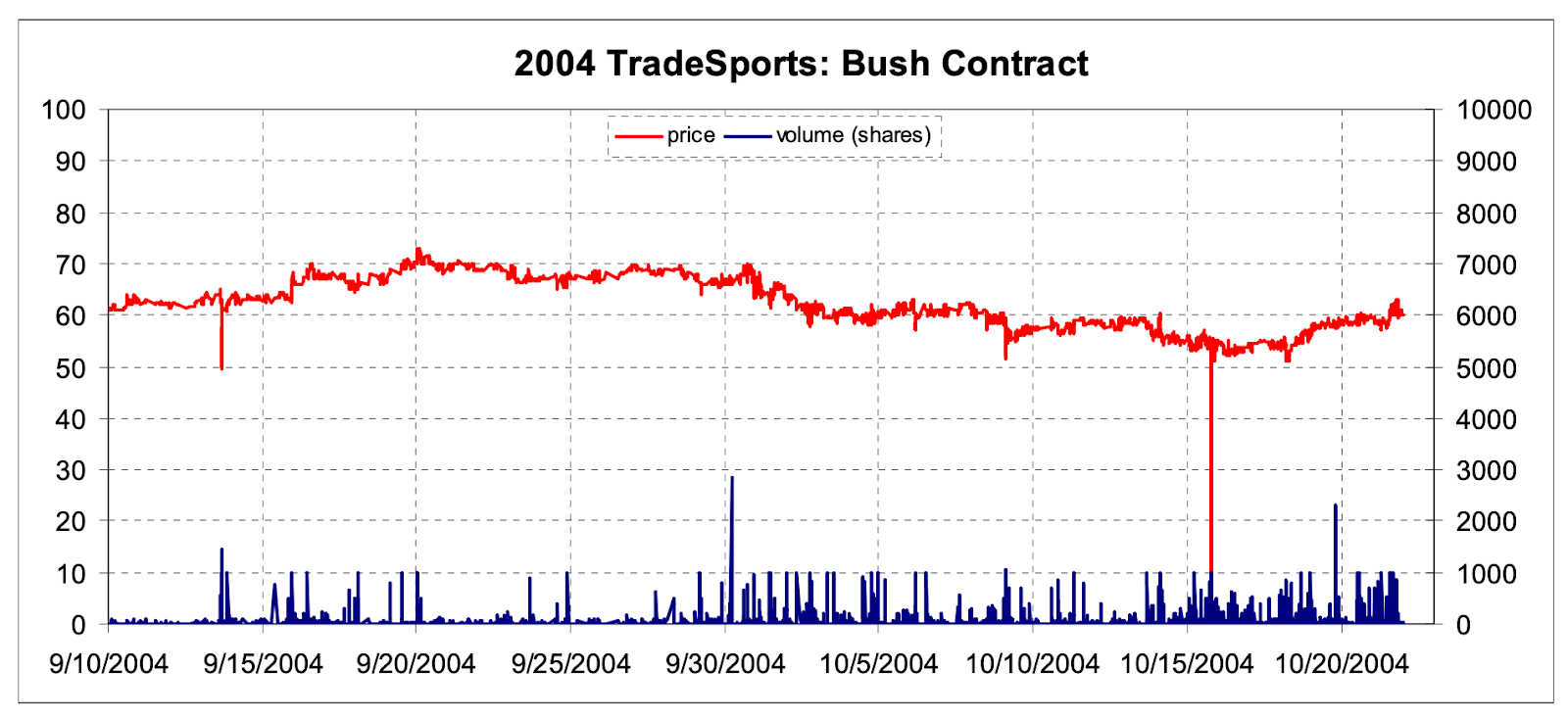 操纵选情的潜在威胁从未消失。2012 年 10 月 23 日上午,在 Barack Obama 和 Mitt Romney 竞选期间,一名交易员下了一个大单,在 InTrade 上购买 Romney 股份,导致他的价格飙升约 8 点,从略低于 41 美分升至近 49 美分——如果相信价格的话,这表明竞选几乎平手。但价格很快回撤,媒体几乎未加关注。试图操纵者的身份从未被确认。