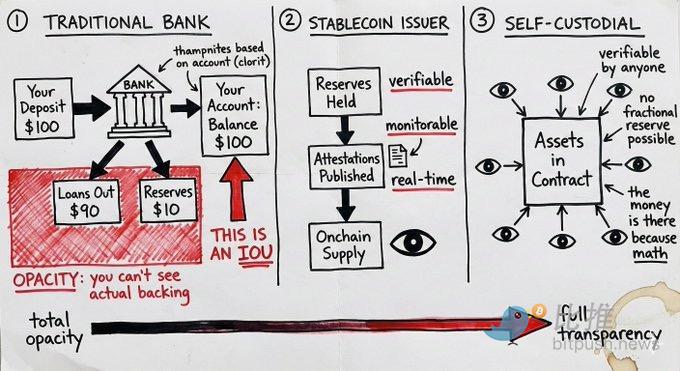 这并不意味着自我托管适合所有人。大型机构可能仍需要监管框架和保险产品。但对于许多使用场景而言,具有可监测发行方风险的自我托管模式,优于需要保险兜底的不透明机构信任模式。