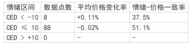 趋势结论: - 极端负情绪区间(CED < -10)价格表现反而略优于正常区间,但情绪-价格一致率较低(37.5%) - 当CED突破10阈值时,往往伴随价格的技术性反弹,显示极端情绪可能预示短期反转机会 - 全日未出现极端正情绪(CED > +10),反映市场整体偏谨慎