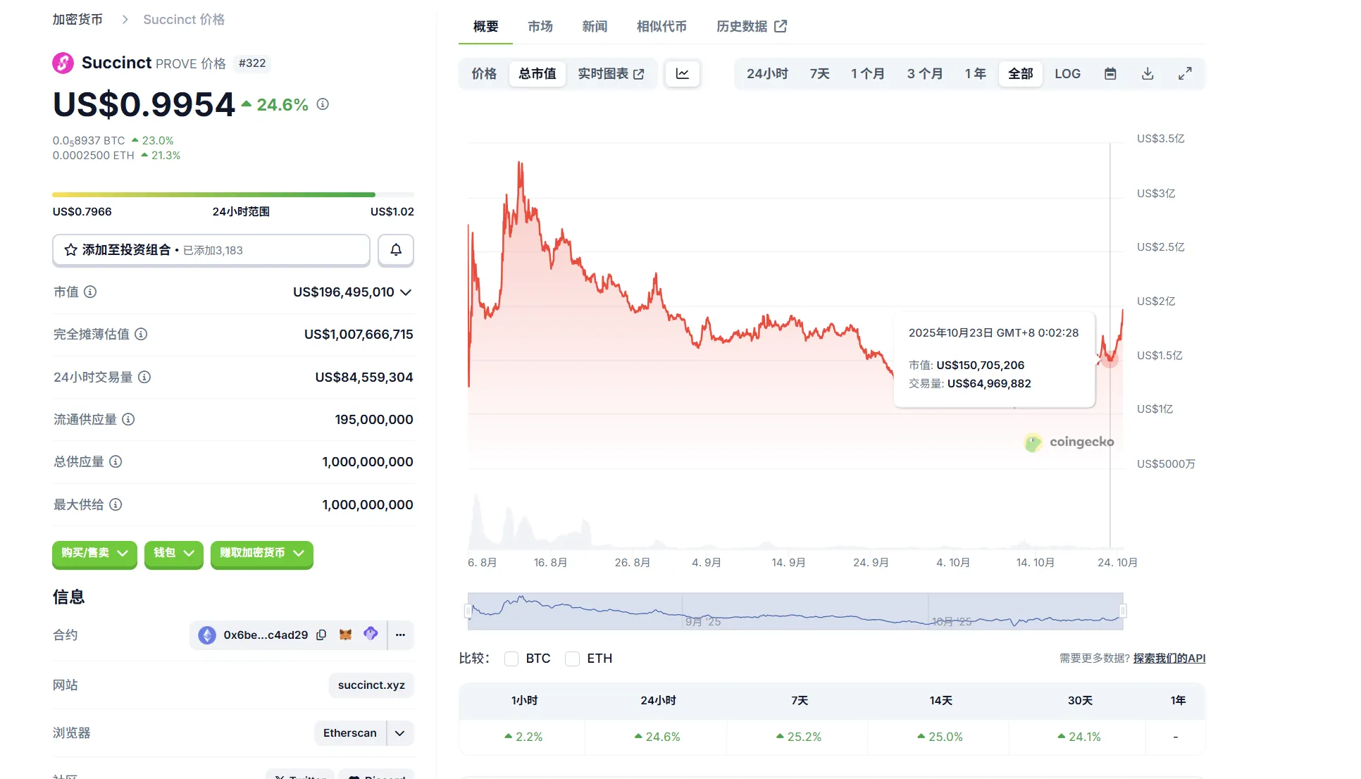 - Arbitrum 合作的意义:Blockworks 文章指出,与 OffchainLabs 的 Tandem 合作为 Arbitrum 提供 zkVM 服务,将为 Arbitrum DAO 和 Orbit 链提供可信的 ZK 升级路径,缩短结算时间、提升资金效率,并为 Succinct 带来来自以太坊最大 Rollup 生态的新市场。The Defiant 认为,该合作可为 Arbitrum 网络和 PROVE 持有者带来数千万美元甚至更高的潜在收入,显示 ZK 模块化正成为 L2 竞争的新趋势。