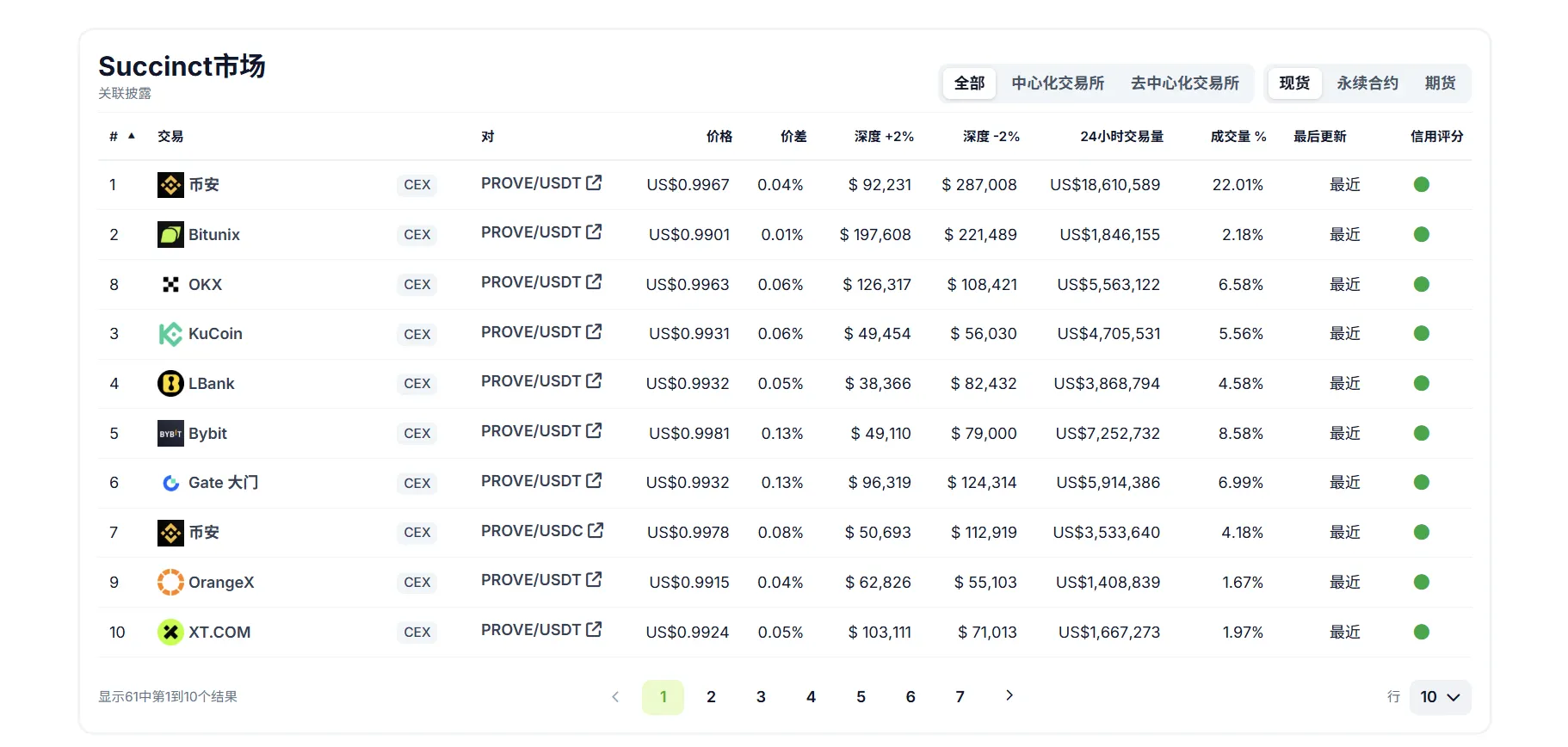 流动性方案,PROVE 在各大交易所的表现都很不错,也和近期价格异动有关。