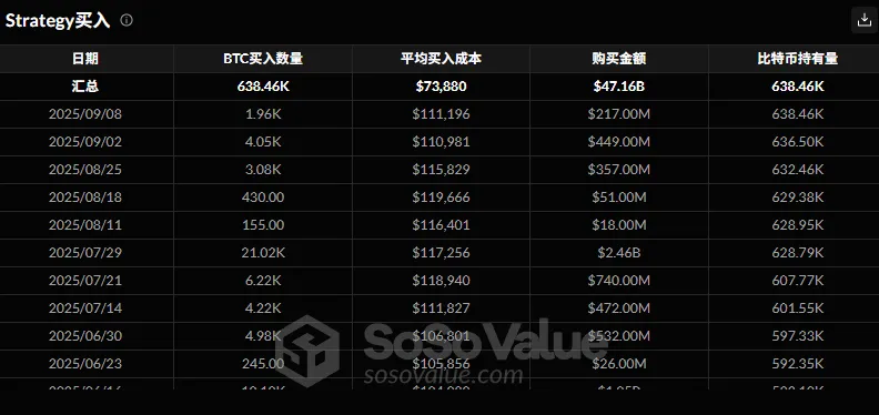 微策略于9月8日花费2.17亿美元以111196的平均价格购买了1960枚比特币,虽然买入数量少于上周4050枚btc的购买,但依然能一定的振奋市场情绪的作用。