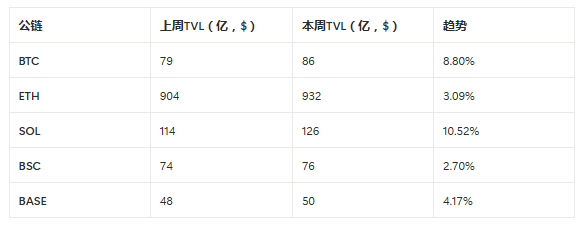 本周链上TVL小幅增长,整体情况较好,特别是eth链 增长明显。