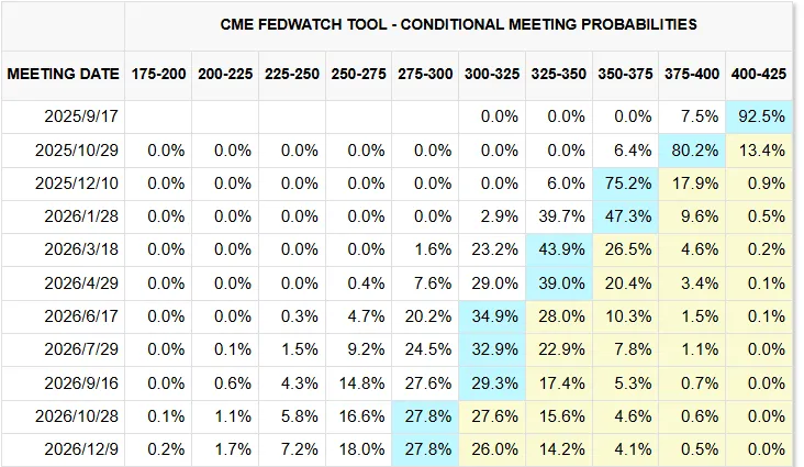 在这种经济环境下,美联储的政策重心将从“抗通胀”转向“稳增长”。市场已经完全消化了美联储下周降息的预期,甚至有人开始押注更激进的降息路径。