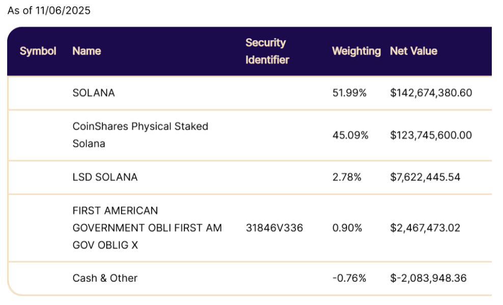 SSK 的模式更为间接:约一半资产直接持有 SOL,另一半投资于瑞士上市的 CoinShares Staked Solana ETP,从而获得间接质押收益。对于自身持有的部分,SSK 委托外部验证者质押,并以现金形式定期向投资者派息,截至 9 月底,其分配率约为 5.1%。