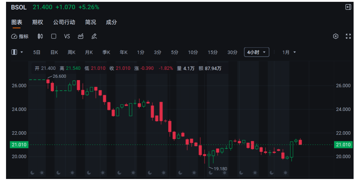 不过,BSOL 并非美国市场上首个与 Solana 挂钩的 ETF。在其之前,REX–Osprey SOL + Staking ETF(SSK) 已率先推出,目前基金规模约为 2.76 亿美元。