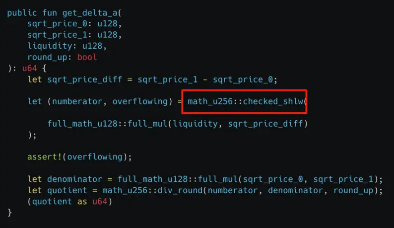 本次攻击的根本原因在于 get_delta_a 函数中的 checked_shlw 实现错误,导致溢出检查失败。攻击者仅需要少量代币,就能在流动性池中兑换出大量资产,从而实现攻击。