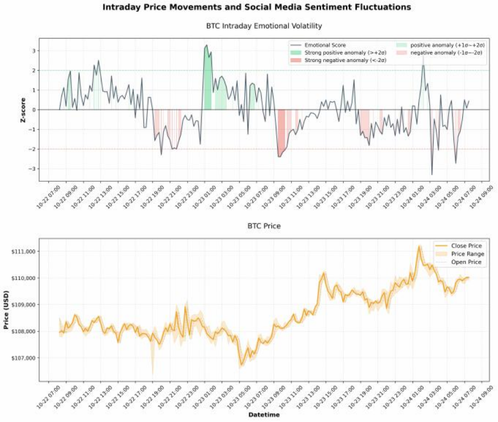 .上午(08:00–12:00):情绪波动剧烈,多次出现极端乐观情绪· 下午至傍晚(12:00–20:00):情绪逐渐回落,趋于中性