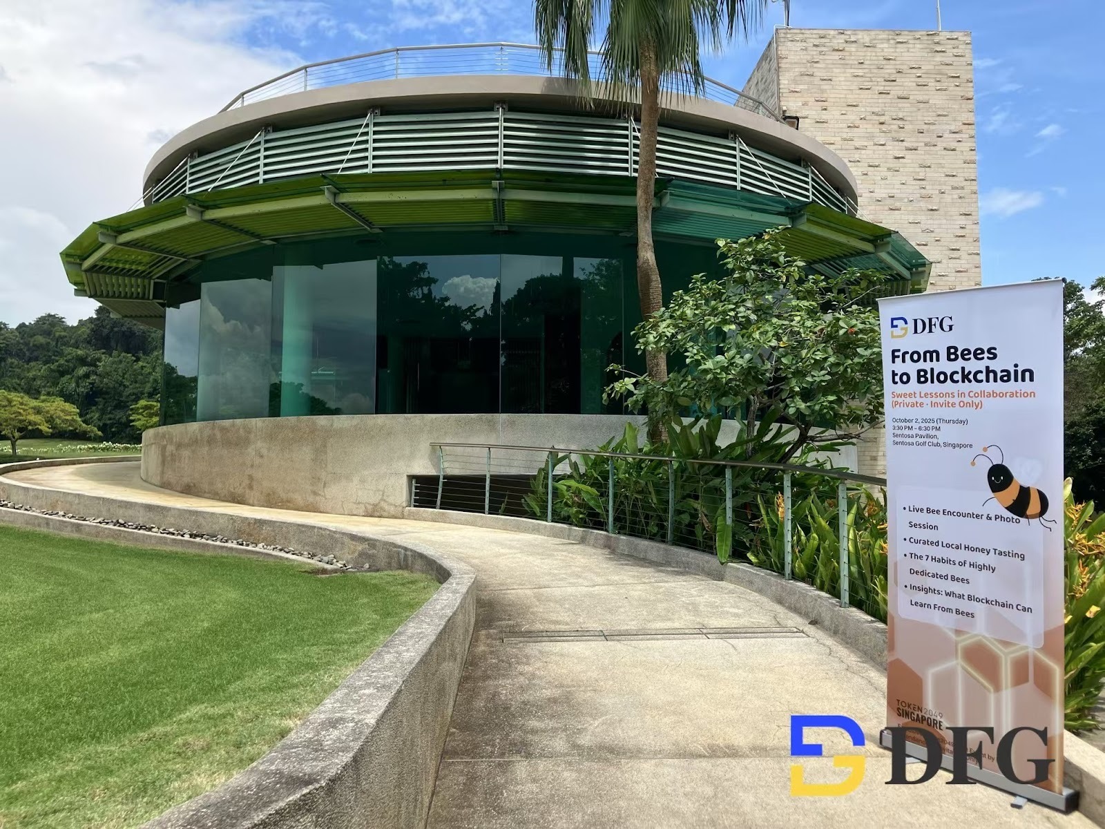 10 月 2 日,DFG 在圣淘沙亭子郁郁葱葱的背景下举办了一场私人下午活动,题为“从蜜蜂到区块链:合作中的甜蜜课程”,聚集了合作伙伴、KOL、创始人和生态建设者的私密圈子,体验了一场无缝融合自然、创新和共同目标的体验。