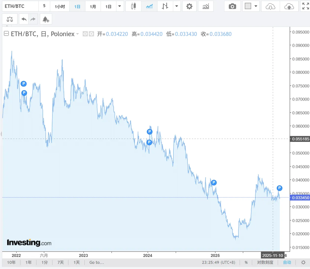 • 相对价值崩塌:ETH/BTC汇率跌至近年最低水平,较历史高点腰斩超60%
