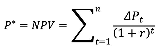 使用 10% 的贴现率,将每年价值增量 ΔPt 折现,得到所有未来“货币增值”的现值总和: