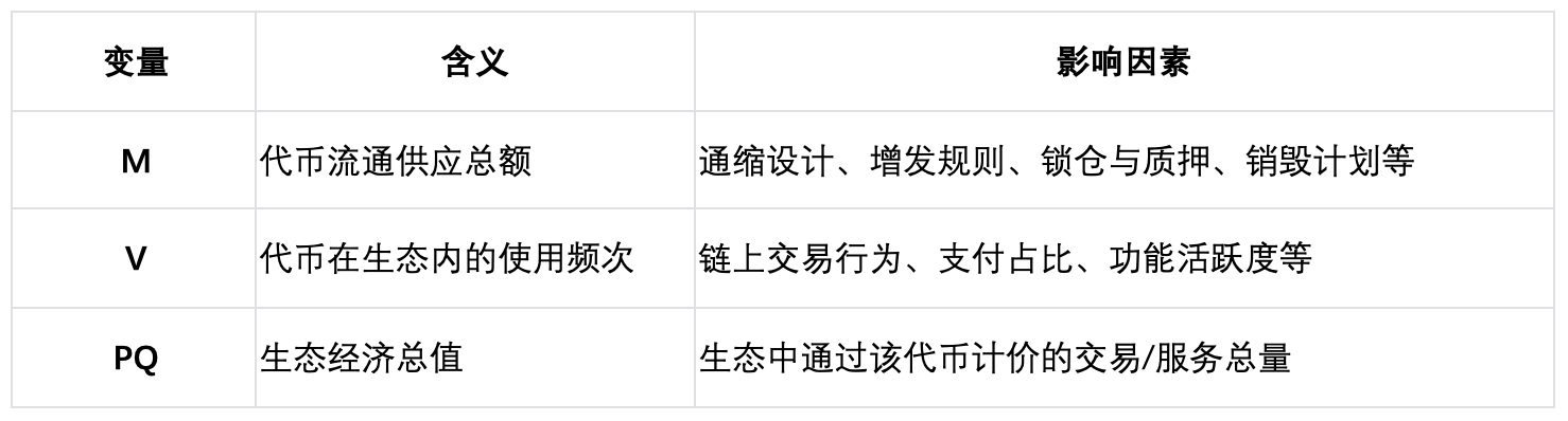 任何影响代币价值的变量(如用户数、交易量、销毁机制等),最终都通过对 PQ 或 M × V 的影响作用于代币价格。