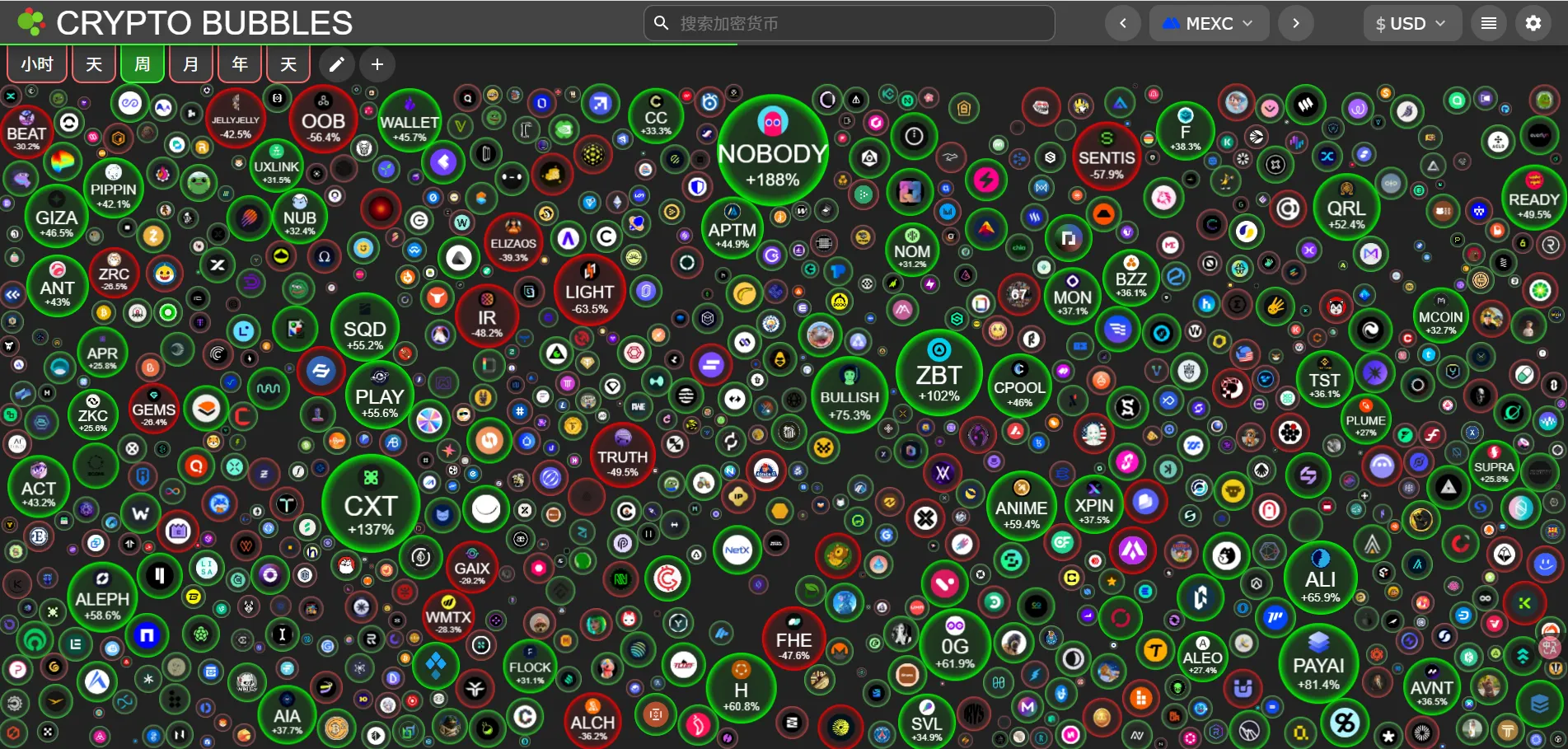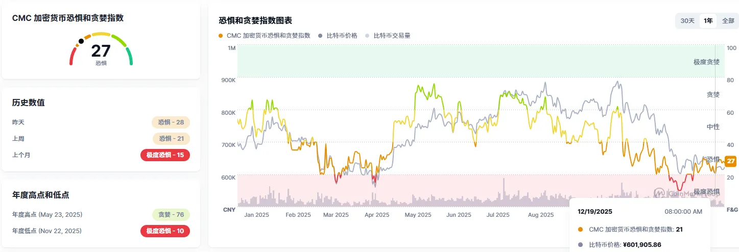 本周五山寨指数为 16,大山寨币维持低位震荡,市场交易活跃度低迷。市场情绪指数回升至 27,较上周有所改善,个别山寨币表现活跃,但整体热度不足。