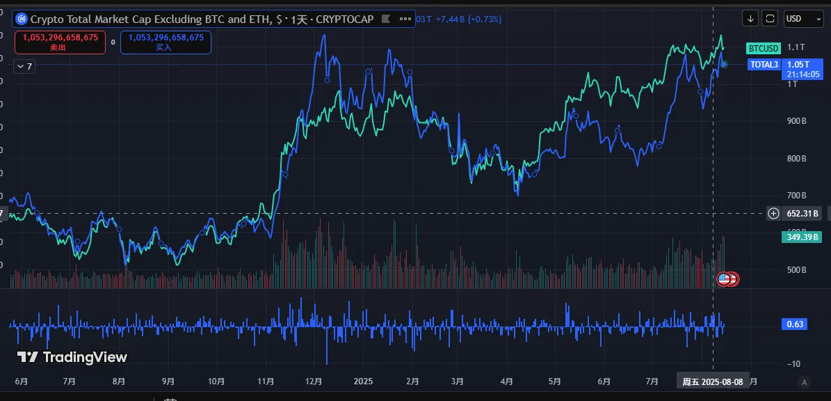 BTC 在收回前期跌幅后进入横盘整理,但 ETH 表现强势,不仅突破前期高点,还持续拉升走出独立行情,成为市场核心推动力。