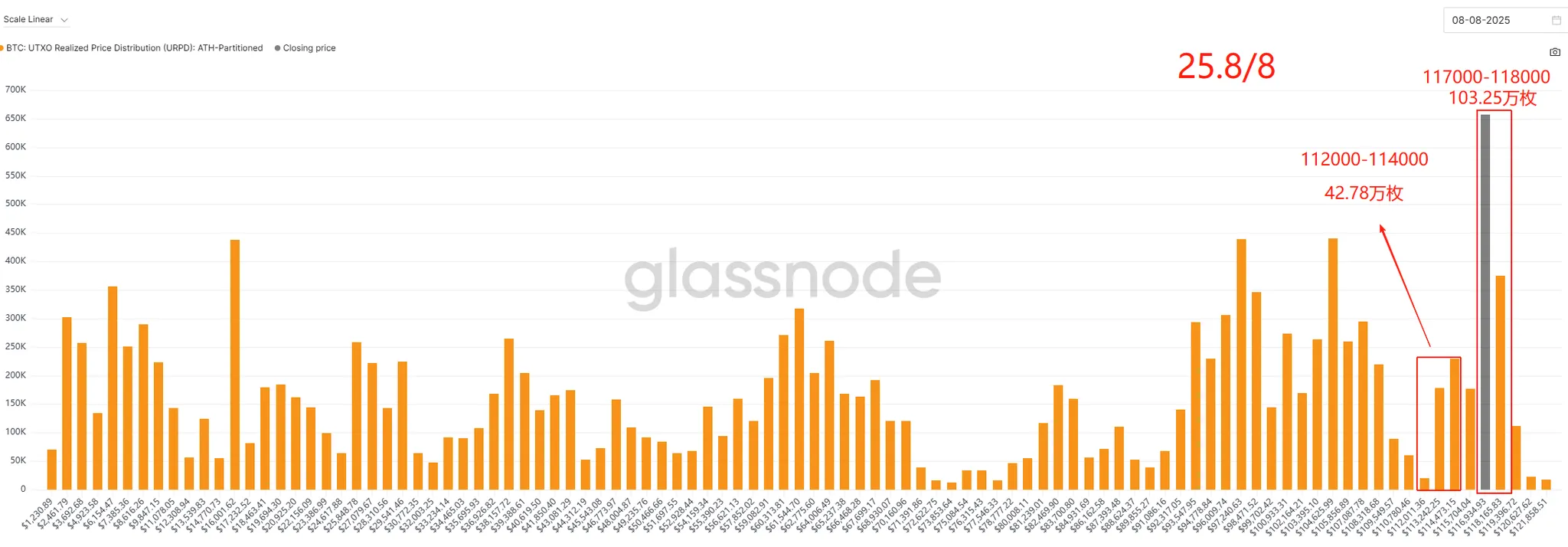 本周 BTC 在 11.4 万 - 11.9 万美元区间积累 166.51 万枚筹码,形成新的密集区,短期回调后需关注该区间能否提供有效支撑。