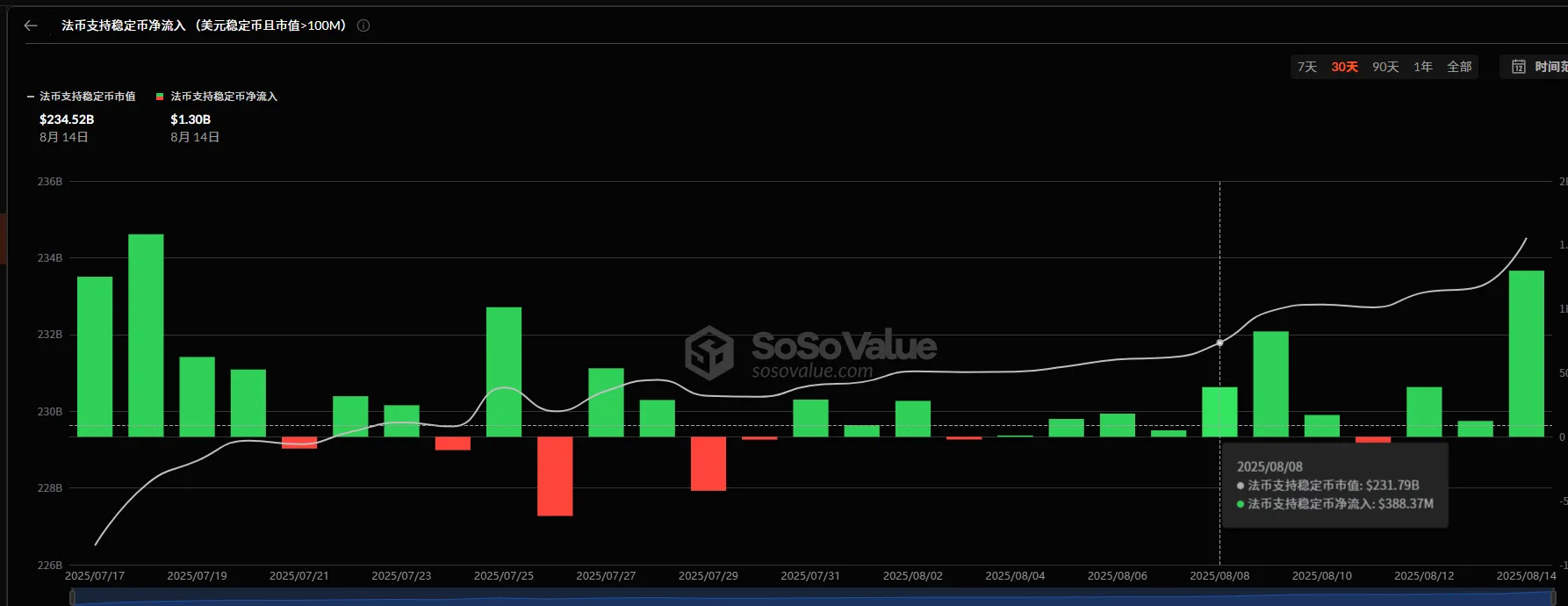 本周加密市场先强后弱,ETH 表现突出,前期突破新高走出独立行情,BTC 则以横盘震荡为主,8 月 11 日市场风格切换后,周四美国 PPI 超预期数据触发主流币剧烈回调。资金面呈现强支撑,稳定币单周增发 39.58 亿美元(创 5 月以来新高),比特币 ETF 由净流出转为净流入 9.6582 亿美元,机构与场外资金在回调中显现抄底动作。