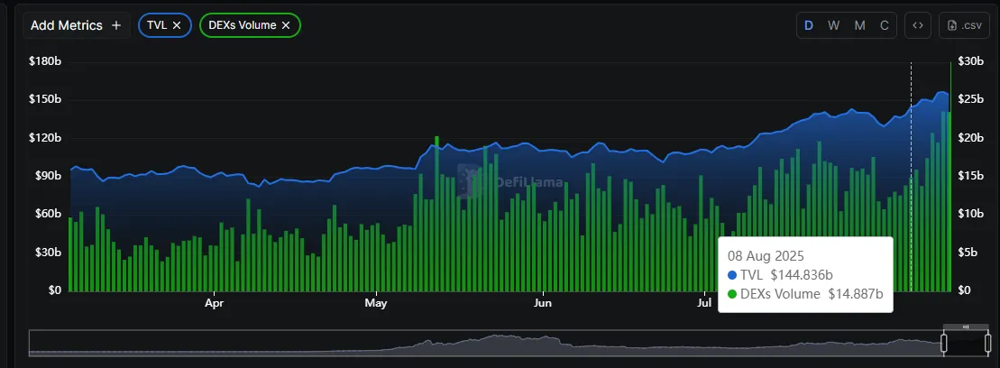本周(8.9-8.15)加密市场先强后弱,呈现 “ETH 领涨→风格切换→数据诱发回调” 的三段式行情,核心节奏如下:
