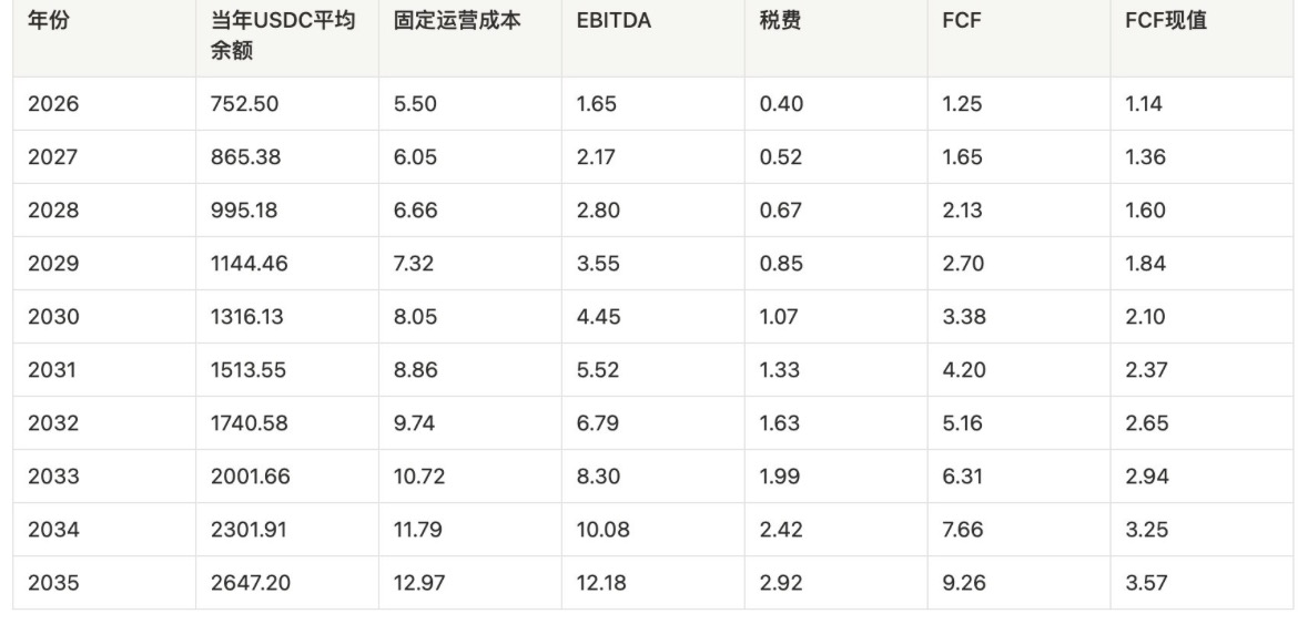 用当年USDC平均发行量(而不是当年年末发行量)来计息与算 EBITDA。