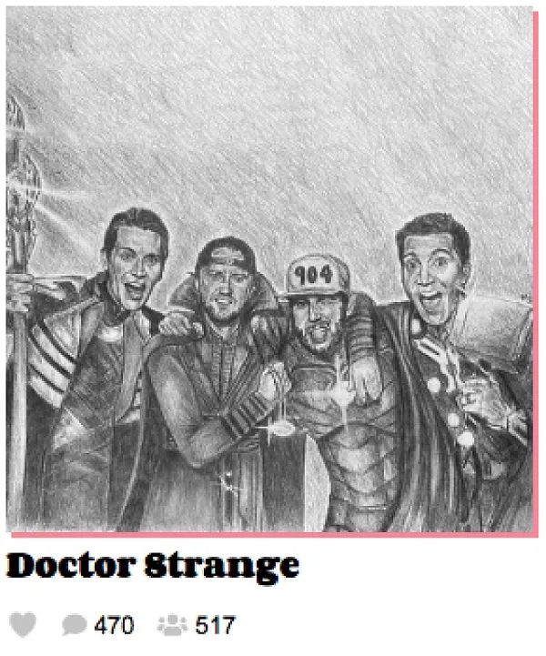 费尔顿构建了一个粉丝艺术 NFT 画廊,接受粉丝艺术作品的投稿。在他的画廊中,已经有数以千计的 NFT 被粉丝免费领取。这部被费尔顿选择展出的同人艺术 NFT 被 500 多人免费认领,获得了 800 多个赞和 400 多条评论。