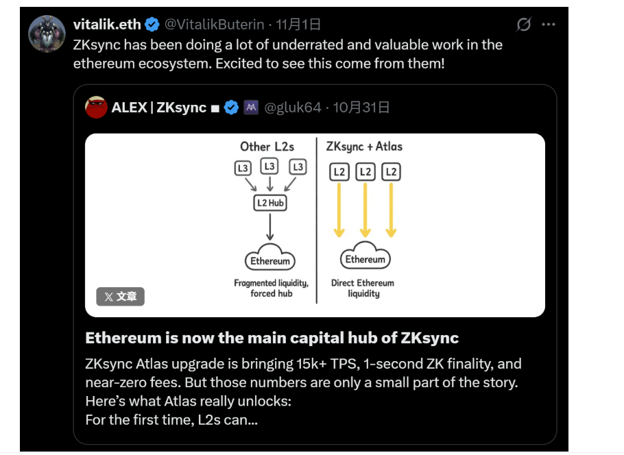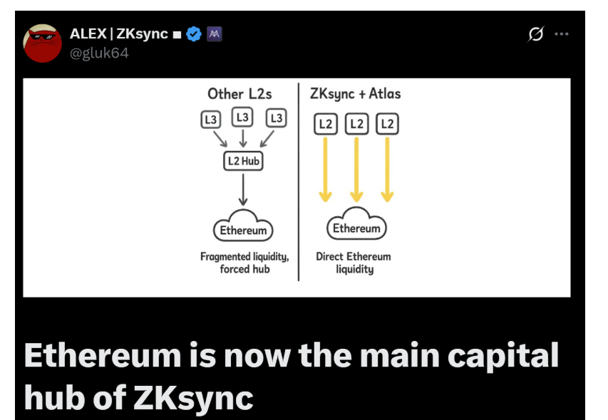 而在此背景下,ZKsync 正成为最早实践者之一,其创始人 Alex 表示,随着 Atlas 升级 的完成,ZKsync 已真正实现与以太坊主网的验证一体化——两者的运行节奏、确认速度与流动性几乎完全同步。