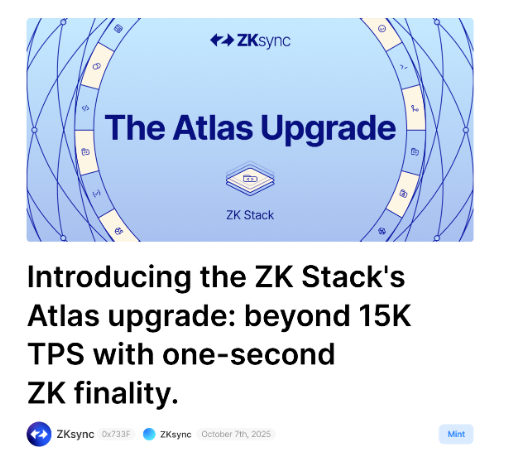 正是在这种一片唱衰声中,ZKsync 在技术与生态两端的进展依然令人瞩目,不仅持续推进核心底层研发,还在上个月正式推出了 ZK Stack 的 Atlas 升级版——这也是 ZKsync 向「企业级上链」迈出的关键一步。