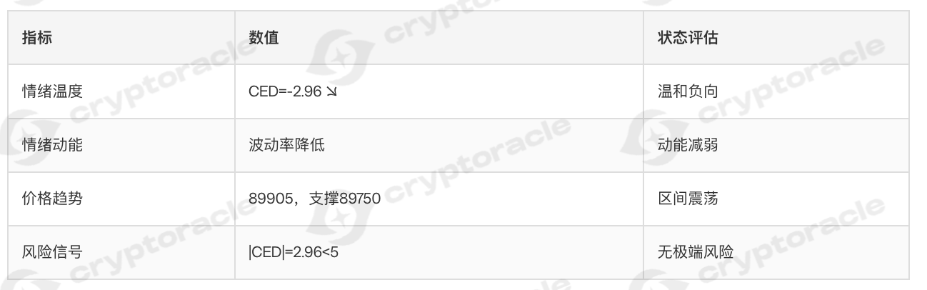 - 情绪整体中性偏负,日内波动显著但未出现极端值(|CED|>10)