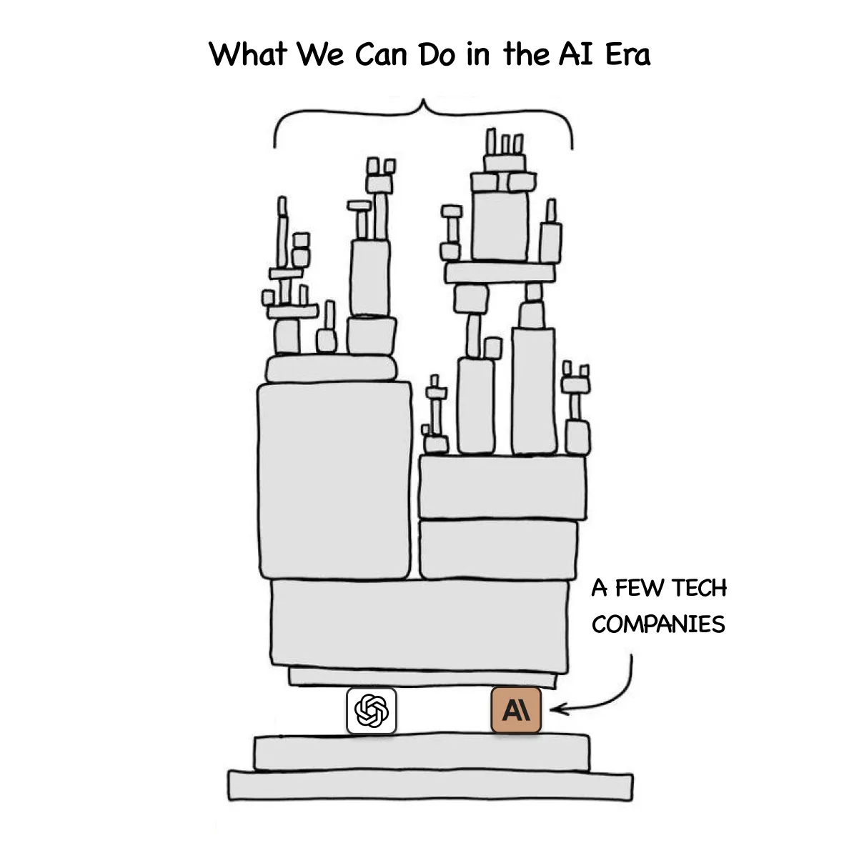 然而,这种能力随时可能消失。我们并不完全拥有或控制它。少数几家大公司(OpenAI、Anthropic等)提供了大多数服务运行所依赖的基础设施。我们依赖于他们的系统。