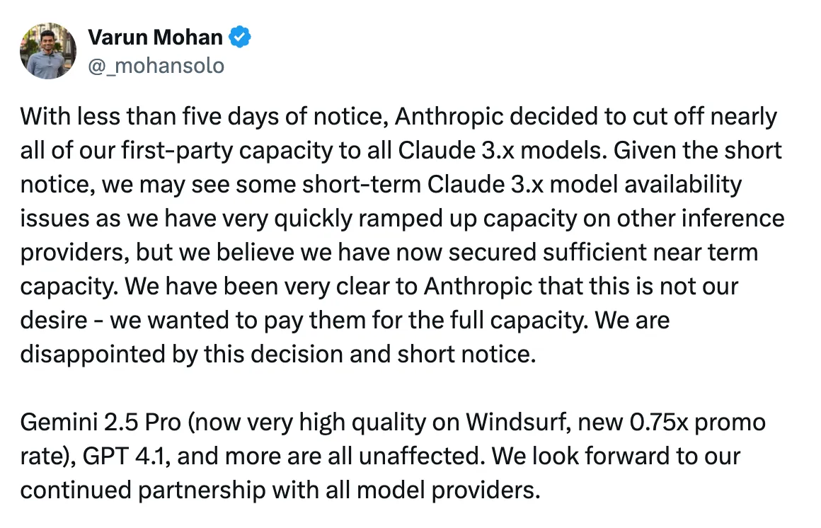 这在今天看起来似乎只影响像Windsurf这样的一些公司。随着依赖性的增长,每个人都将面临这个问题。