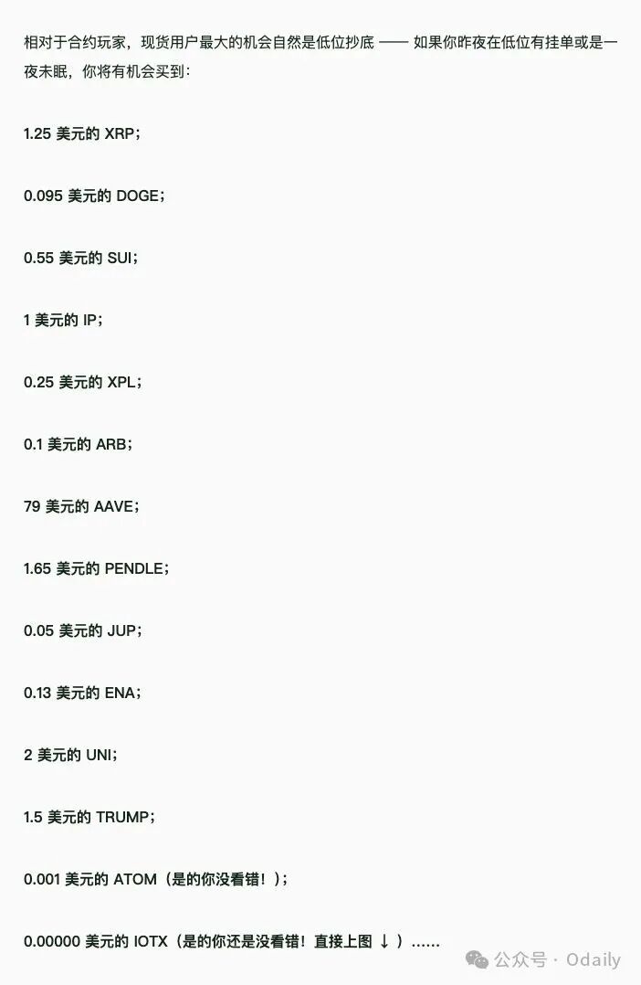 当然,风险中藏机遇。正如 Odaily星球日报在《大暴跌中,谁人“刀口舔血”狂赚上亿?哪些暴富机会近在眼前?》(https://www.odaily.news/zh-CN/post/5206774)、《加密史上最大爆仓日背后的巨鲸刺刀战:空军酒足,提刀离席》(https://www.odaily.news/zh-CN/post/5206772)等文中提及的各类“暴富机遇”——无论是高倍做空,还是低位抄底,不少人借此混乱赚到麻。
