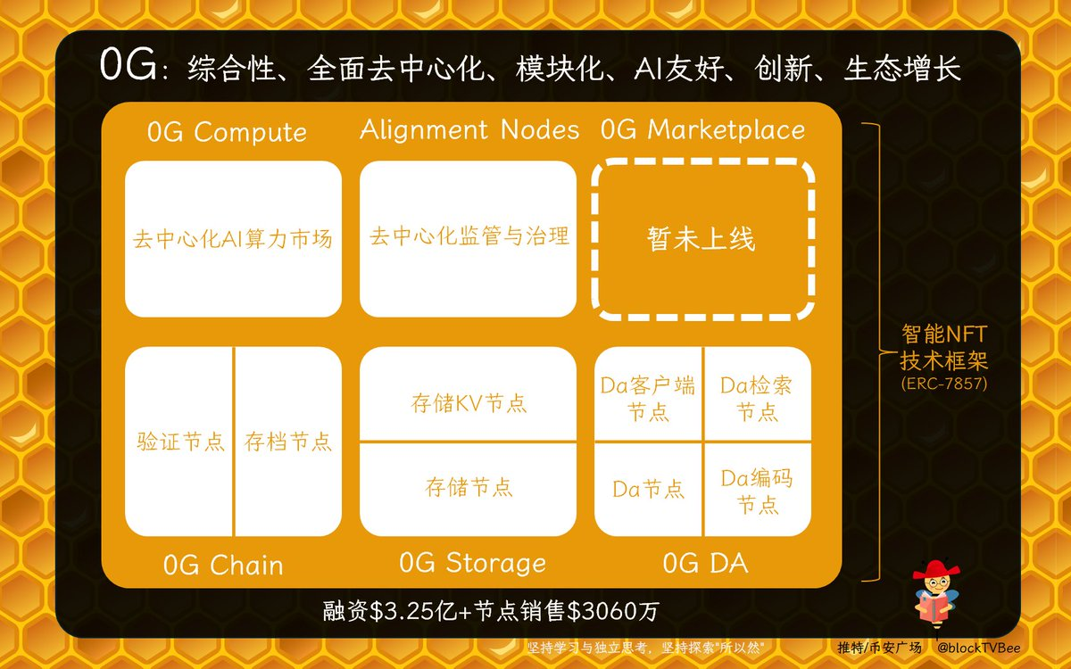 基于技术基础设施,0G构建了更宏观的AI生态体系。0G生态基础设施包括0G Compute、0G Marketplace和Alignment Nodes模块。