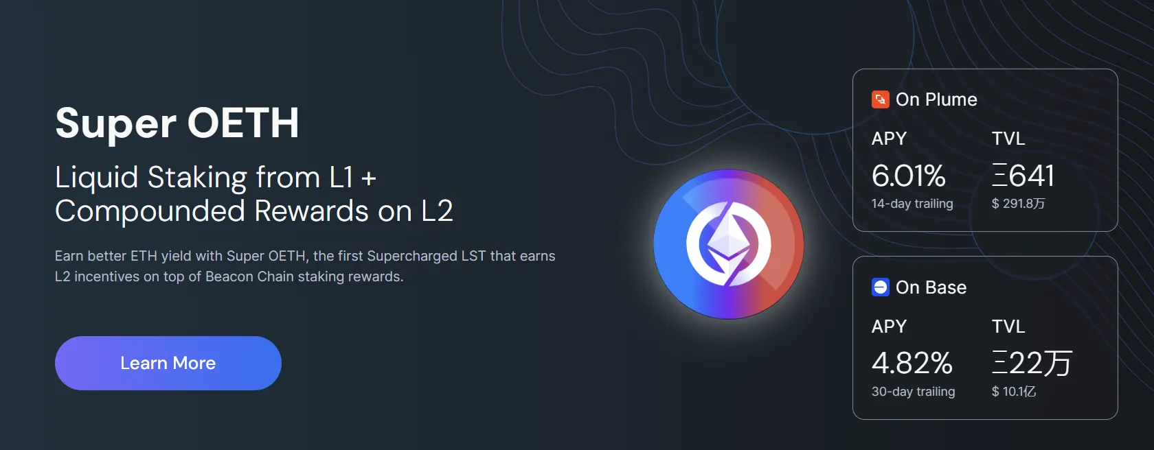 - Super OETH:被官方称为 “首个超级 LST”,主打 L2 网络额外激励,目前已在 Base 等热门 Layer2 布局,进一步放大质押收益;