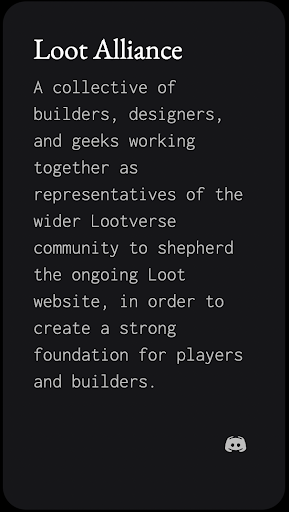 Loot社区将在近期推出一个金库。创始人Dom决定将手中两百多个founder Loot转移至社区金库中,这一举措再次彰显了他不为利益的出发点。此外,还有2.5%的gas fee也将被纳入其中,用于资助优质项目。Loot社区还成立了一个Loot Alliance,该联盟由开发者、设计师和项目牵头人组成,旨在为玩家和开发者提供支持和向导。这无疑是一个令人振奋的消息。Loot金库可以持续赋能开发者、玩家和社群,真正发挥DAO的作用。而这是5年前CryptoKitties所不具备的优势。金库和DAO的支持给Loot的可持续化发展提供了更大保障。
