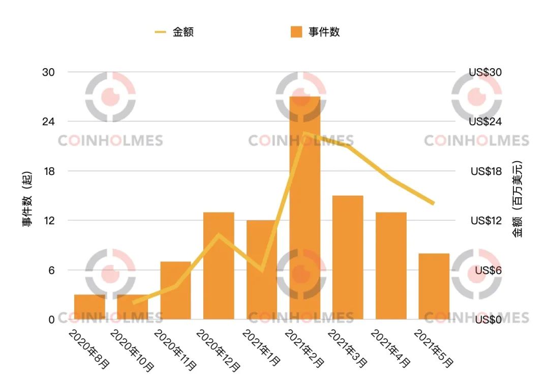 据 PeckShield「派盾」统计显示,自 2020 年 8 月起,DarkSide 开始小试牛刀,并在今年 2 月加速勒索攻击,攻击频率达到峰值。